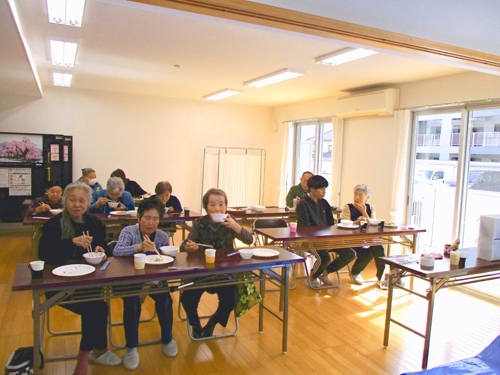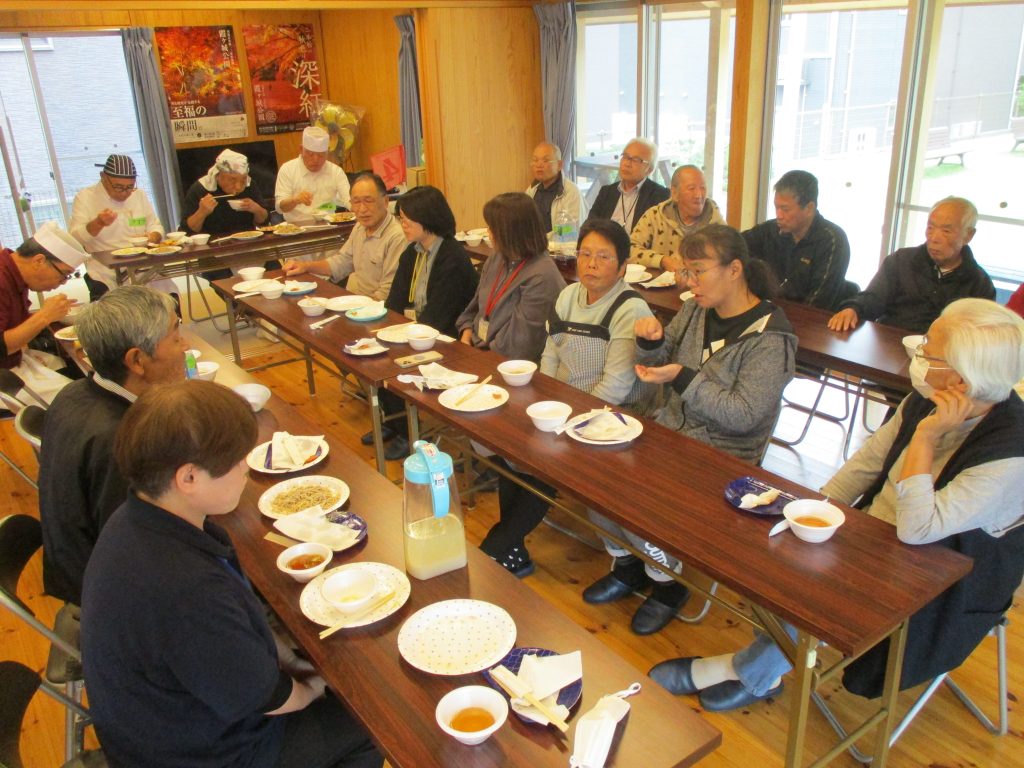 福島県警OBが活動している七宝の会にご協力をいただき、表団地・飯坂団地にて「絆と防犯つなぐ振る舞いそば」が行われました。