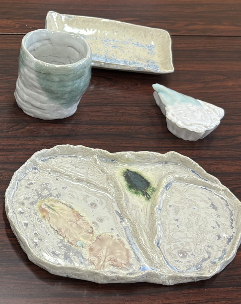 それぞれ作りたいものを選んで自由に制作をした。参加者のほとんどが昨年の陶芸教室にも参加をしており、慣れた手つきで自分なりに工夫を加える方もいたり、事前にデザインを考えて紙に書いて持ってきている方もいて、皆さんの真剣さが伝わってきました。