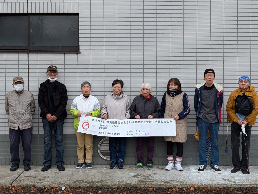 赤い羽根の助成金を活用して、北沢又スポーツ愛好会のグラウンド・ゴルフ交流会が開催されました。コース設営が完了したところで、雨がポツリポツリと振り出してしまい、しばらく粘ったものの、回復の兆しがないため、団地集会所へ移動🚙し、ホールインワンゲームを行うことに。