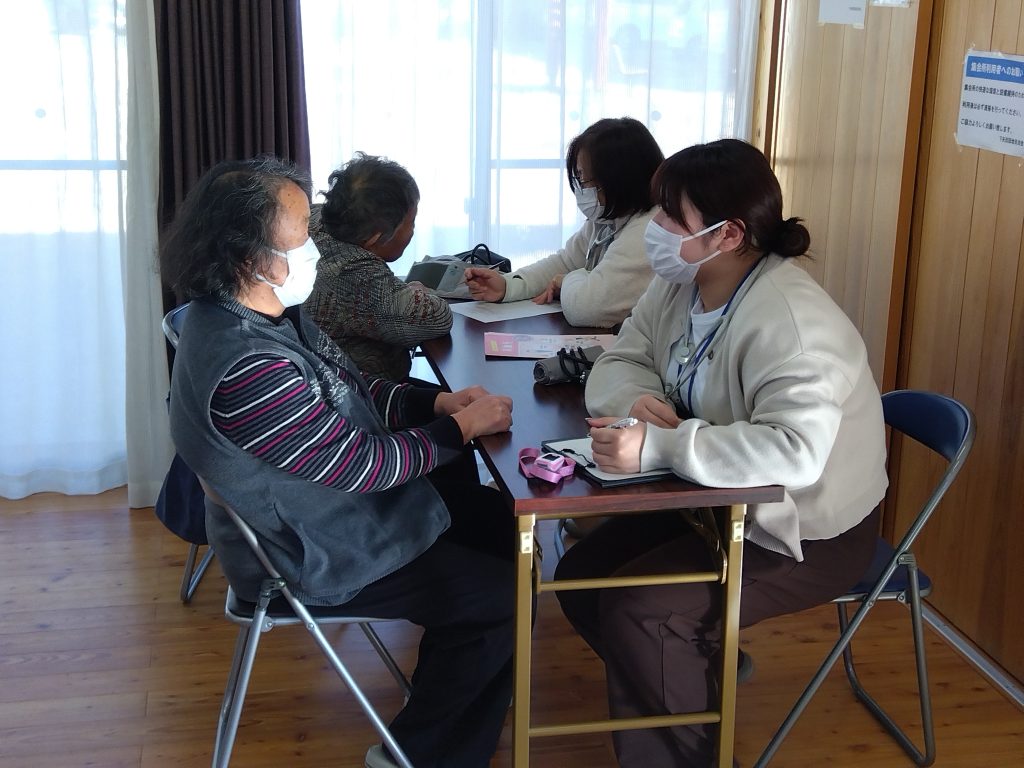 はじめに血管年齢と骨密度を測定しました。健康に関心が高い方が多く今日はいつもよりたくさんの方が参加されていました。
