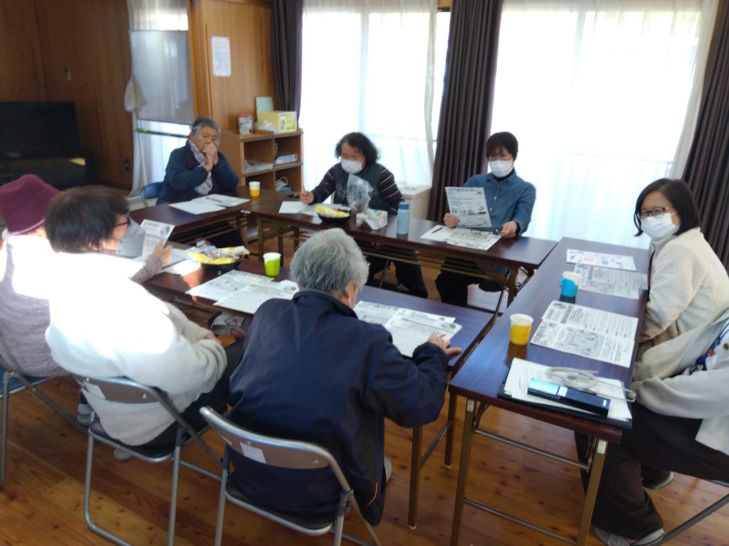 参加者の方が認知症についての本を読んだとの話になり、認知症を予防するためにも「部屋にこもってテレビ見てるだけじゃだめだ」「こうやって集まって話すのがいい」などと集会所で集まれる機会を楽しみにしているようでした☺