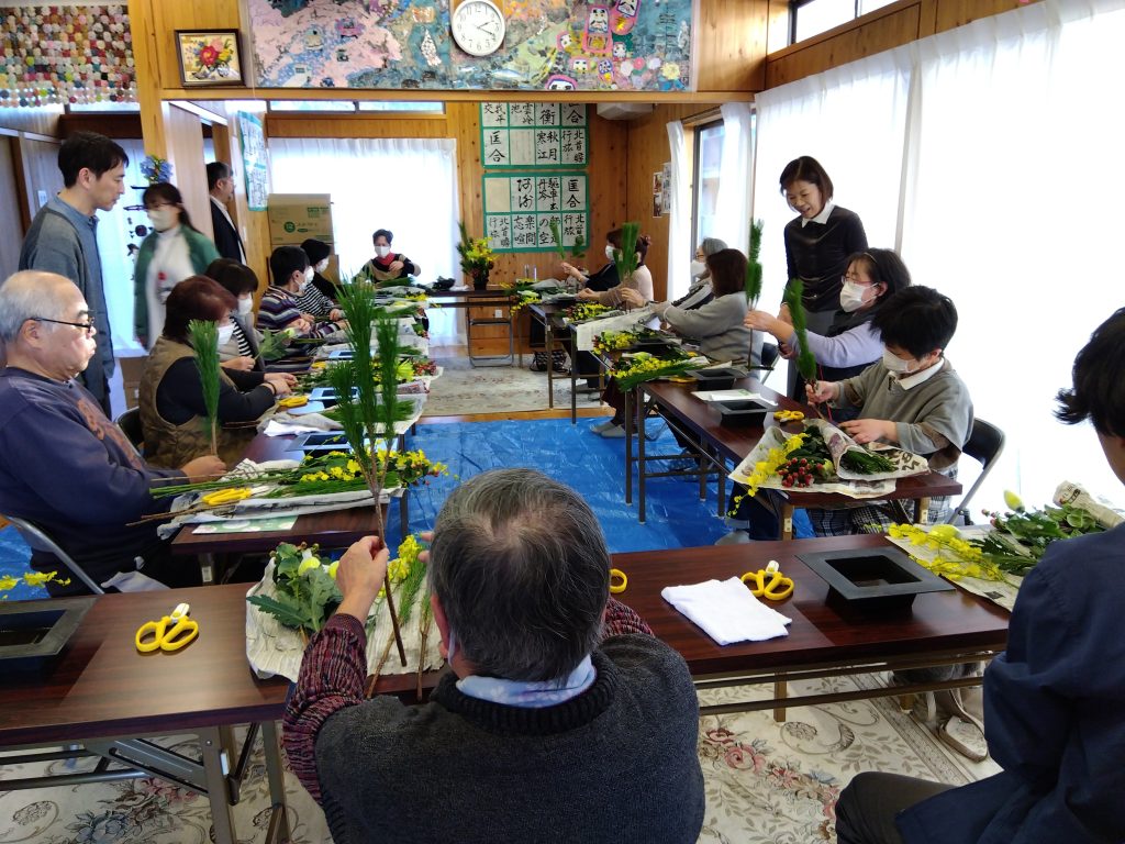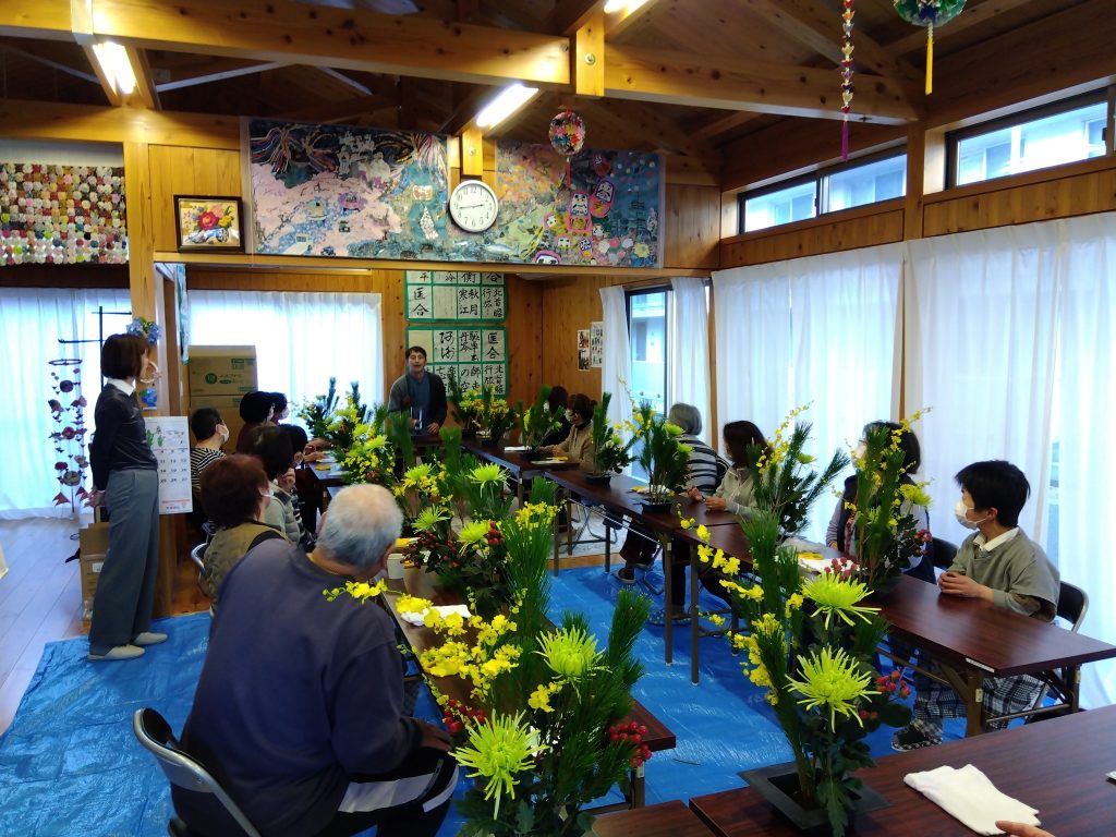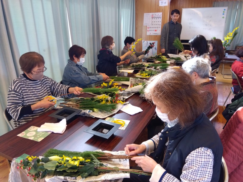 下神白団地自治会主催で「つなげよう花の心」の方をお招きし、生け花教室が開催されました。