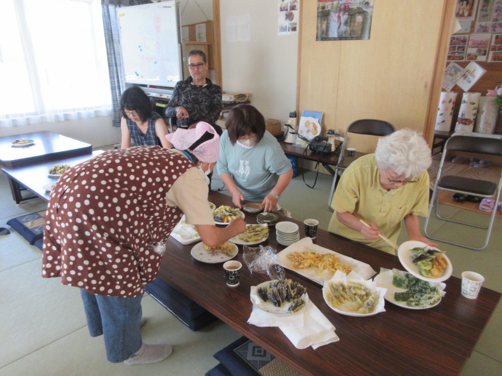 終了後には団地の有志の方から参加された皆さんにお手製のかき揚げうどんが振舞われ、先生を交えて“おいしい時間”も共有し、とても楽しい時を過ごすことができました。