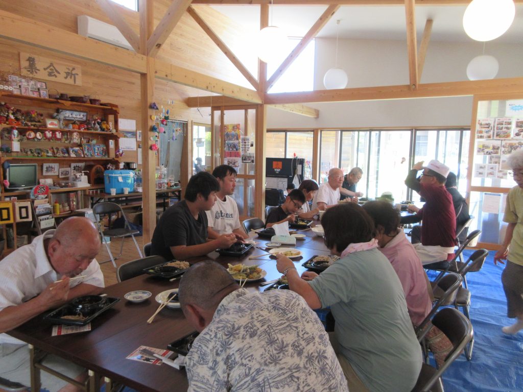 参加した住民さんはおしゃべりを楽しみながら熱々の汁物やこんがりの焼き物をおいしくいただきました。準備いただいた皆さん、ありがとうございました。