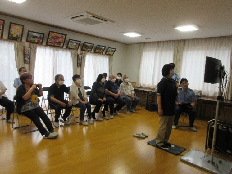 今年度は4回実施予定とのことで、第1回は「健康体操」と題して、「介護老人保健施設 まゆみの里」から理学療法士と作業療法士の先生に来ていただきました。
