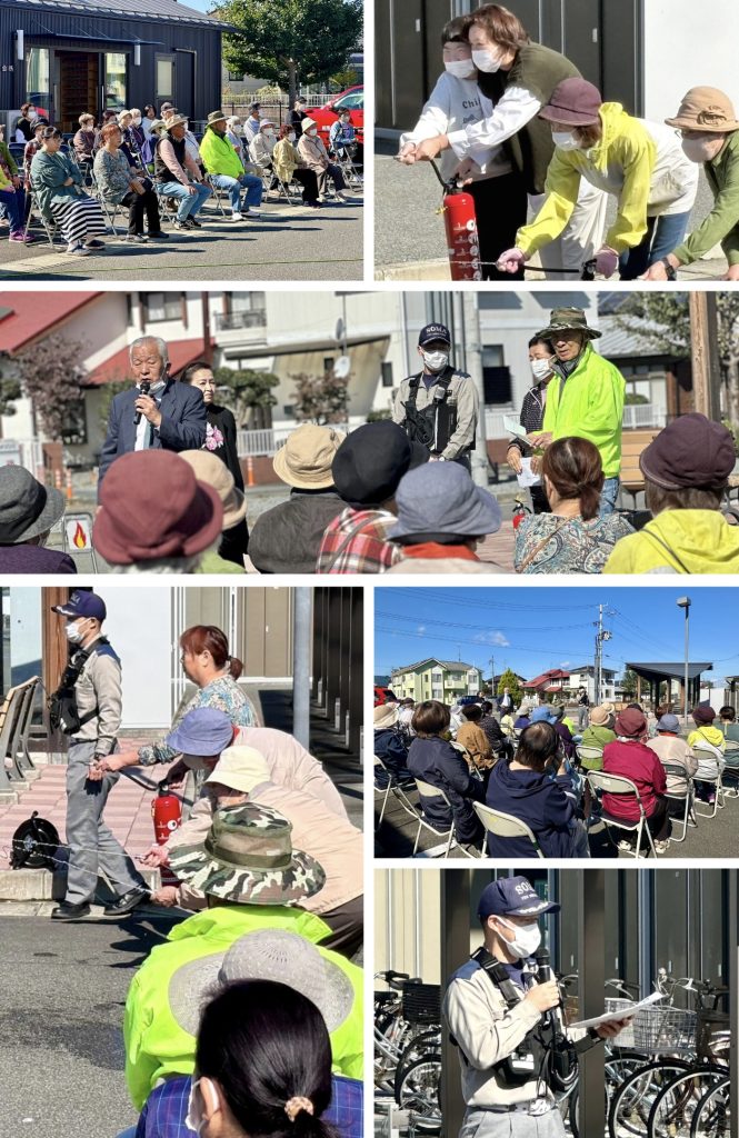 当日は、早くからたくさんの住民さんが集まり、水消火器訓練や通報訓練に積極的に参加されるなど、日頃からの防災意識の高さが伺えました。更に、消防隊員の方への質疑応答では、お子さんからの通報に関する具体的な質問が上がり、皆さん真剣に聞いておられました。年に一回の避難訓練をとおして、防災意識や防災情報のアップデートができましたね!早い時間から準備をされていた役員さん、お疲れ様でした!