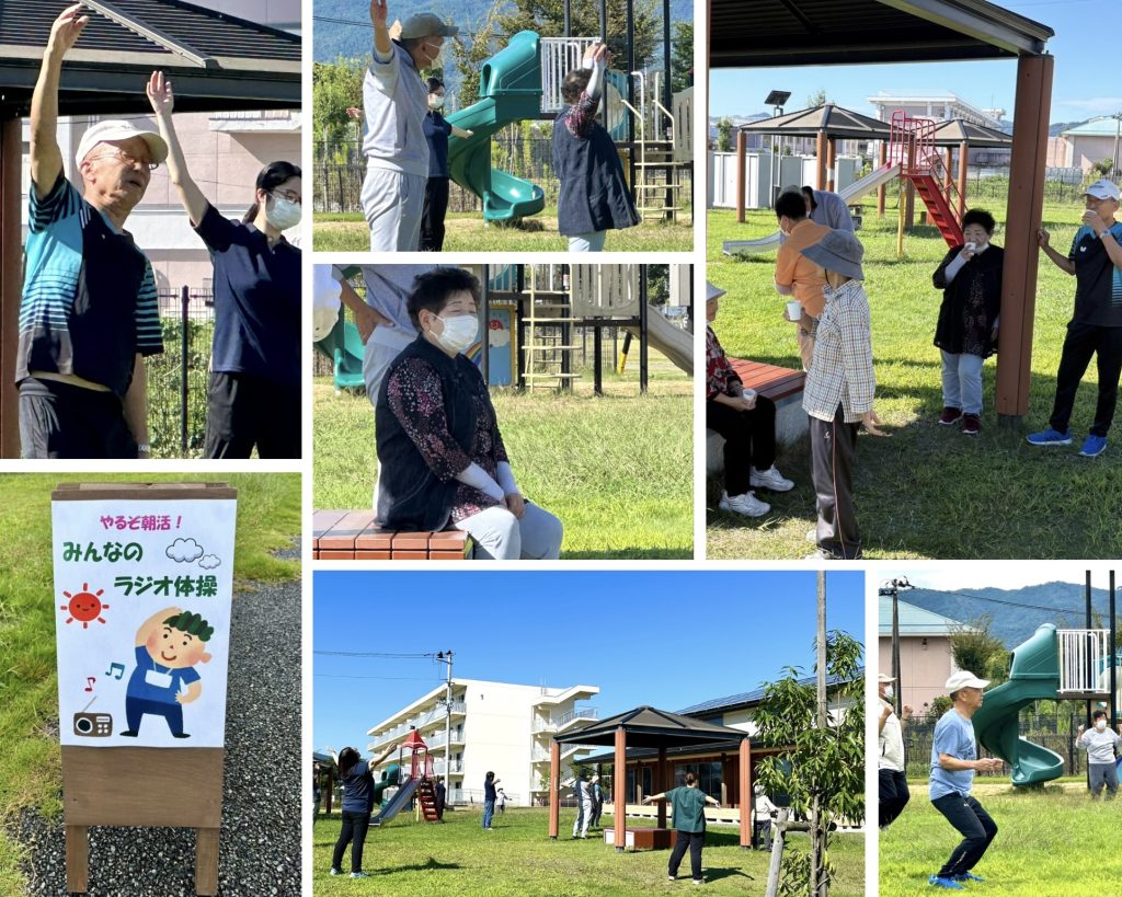 9月25日(木)、26日(金)、南町団地集会所前にて、「やるぞ朝活!みんなのラジオ体操」が開催されました。