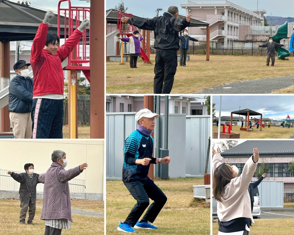 2日間とも天気に恵まれ、開始よりも早い時間から住民さんが集まり、澄んだ空気の中で元気に身体を動かしました! この2日間でだいぶ冬らしい気温になりましたが、キリッと気持ちを引き締め、充実した時間を過ごすことができました。次回の開催時は更に寒くなりそうですが、皆で健康増進に努めましょう!