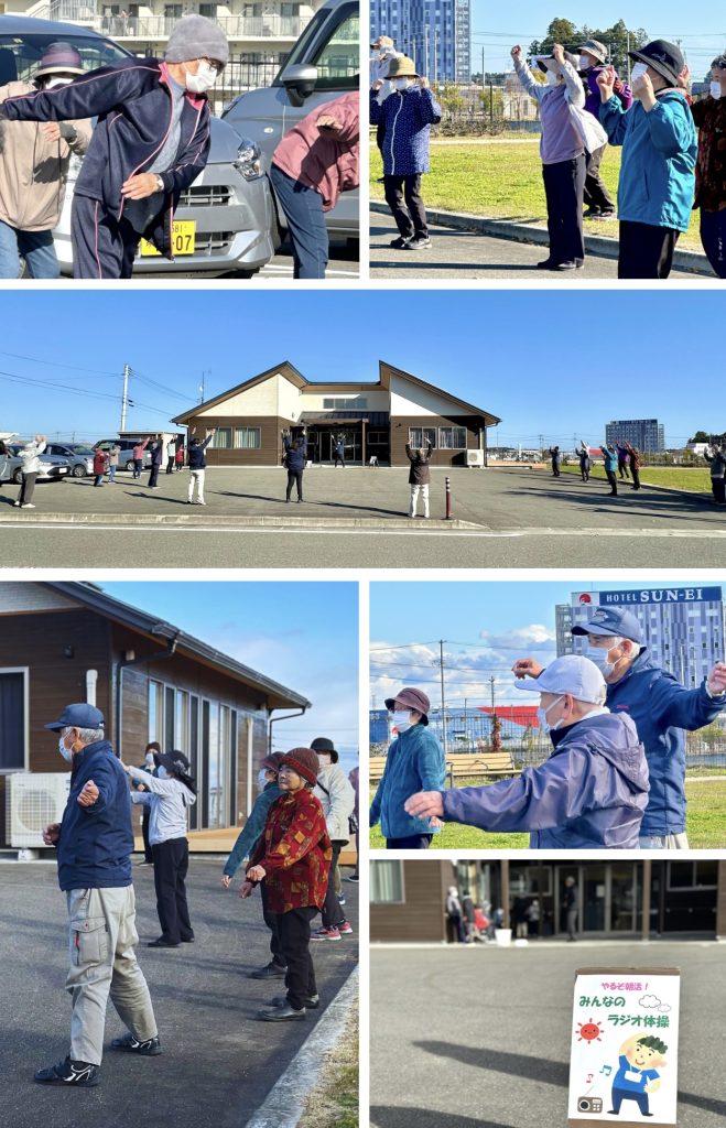 2日間とも爽やかな晴天に恵まれ、外に出て集まっただけでも晴れやかな気持ちになります♪ 西町団地は戸建てのため、入居者の数は少ないですが、いつもより集合が遅いお知り合いを気にかけたり、集まった参加者と情報を共有し合うなど温かいやり取りが見られました。ラジオ体操があると、気持ち良く一日がスタートしますね!