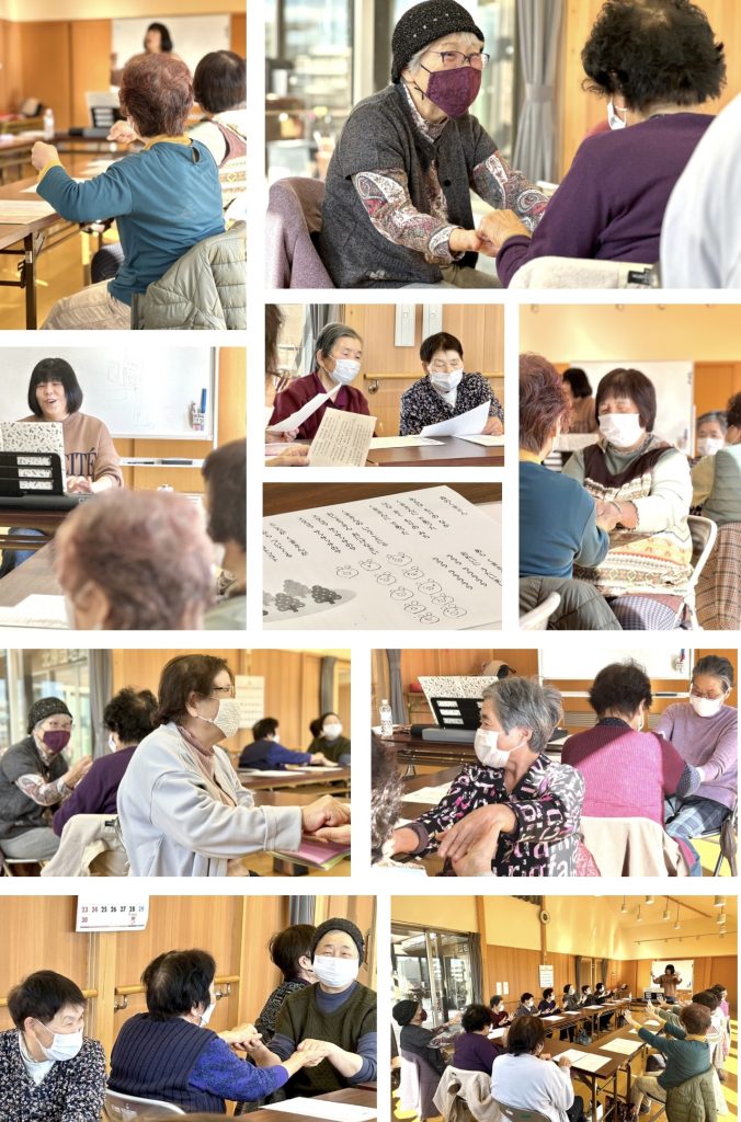 毎月1回開催の「赤とんぼ」の会は、比較的新しいサークルですが、今ではすっかり浸透し、メンバーの活力源になっています!今回は、いつも序盤に行っている脳トレが一気に難しくなり、最初から皆さんフルパワー!!!北原団地の仲良しメンバーのフレンドリーさと、高田利絵子先生の雰囲気づくりのお陰で、出来なくても皆で楽しく笑い合えます♪ そして後半はブレス(息継ぎ)について学び、より美しく歌うレッスンをしました。先生が教えてくれるポイントを意識するだけでびっくりするほど歌声が変わる様子に、皆で感動しました。来月の活動日が待ちきれないですね!