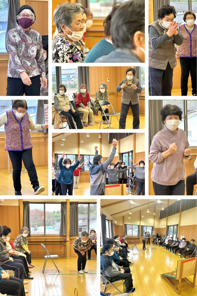 ひんやりと、冬らしさを感じる朝でしたが、風もなく穏やかで体操日和となりました。上町団地は、一番乗りの住民さんが広場に集まると、次々と元気に皆さん集合し、一気に賑やかになります♪ 体操も、動きのひとつひとつを丁寧に、しっかり身体を動かしておられ、運動への意識の高さが伺えました!次回は、冬真っ盛りの時期での開催となりますが、また皆で元気に集まりましょう!